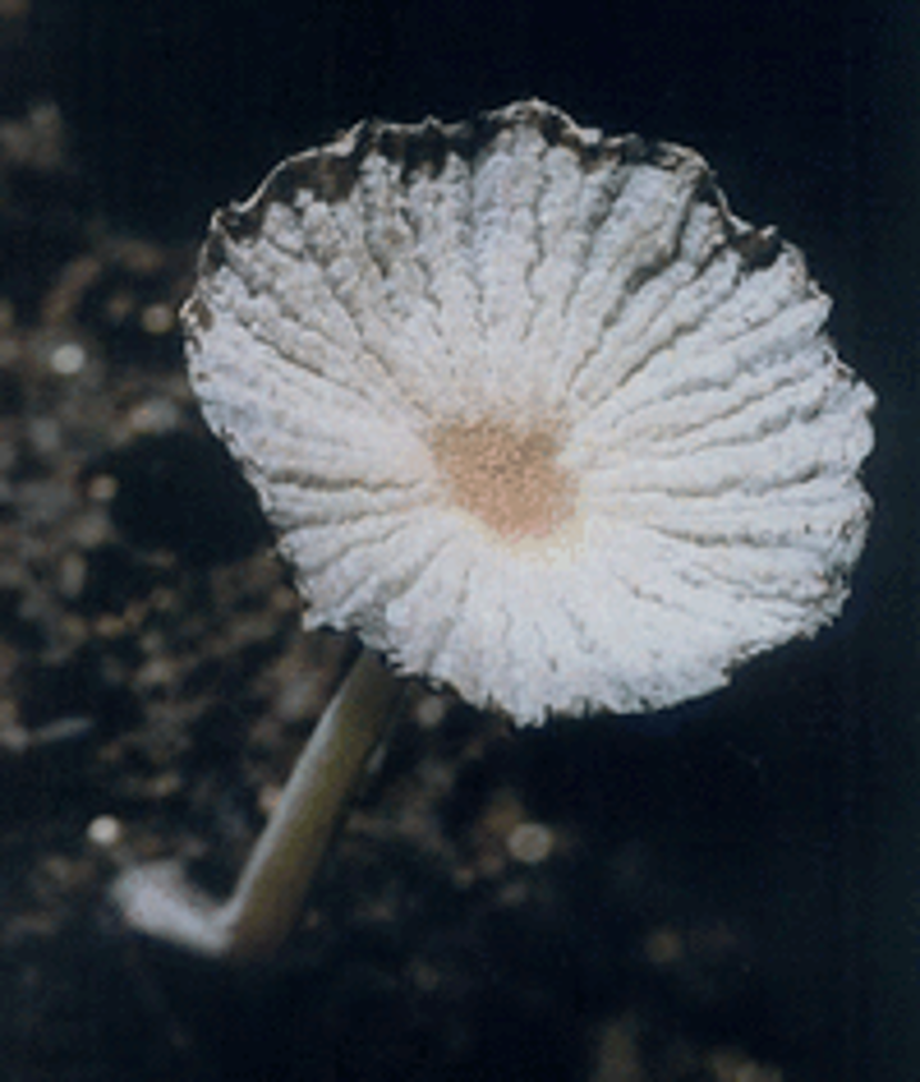 该物种是小鬼伞属中一个小型的粪生物种。宏观上它比较容易识别:担子果很小,菌盖6-13mm宽,菌柄3-6cm高;菌盖黄白色,被大量颗粒状至丛毛状的棕黄色颗粒,边缘有沟纹;菌柄细长白色;菌盖和菌柄表面被大量柔毛,显微镜下可见柔毛本质是盖生囊状体和柄生囊状体...... | ![]() |